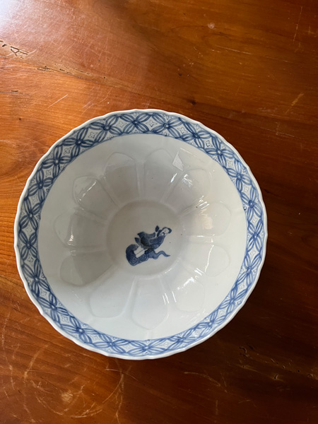 - Katalog-Nr: 1255Runde Kumme. Asien. Porzellan, unterglasurblau bemalt; am Boden gemarkt, H=8,5 cm, D=17 cm.o.L.