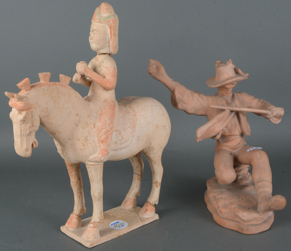 - Katalog-Nr: 1309I. Znov (Prager Keramiker des 20. Jhs.). Zwei Trachtentänzer. Ton, seitl. sign./bez.; dazu Reiterfigur, H=28 / 35,2 cm. (besch.)o.L.