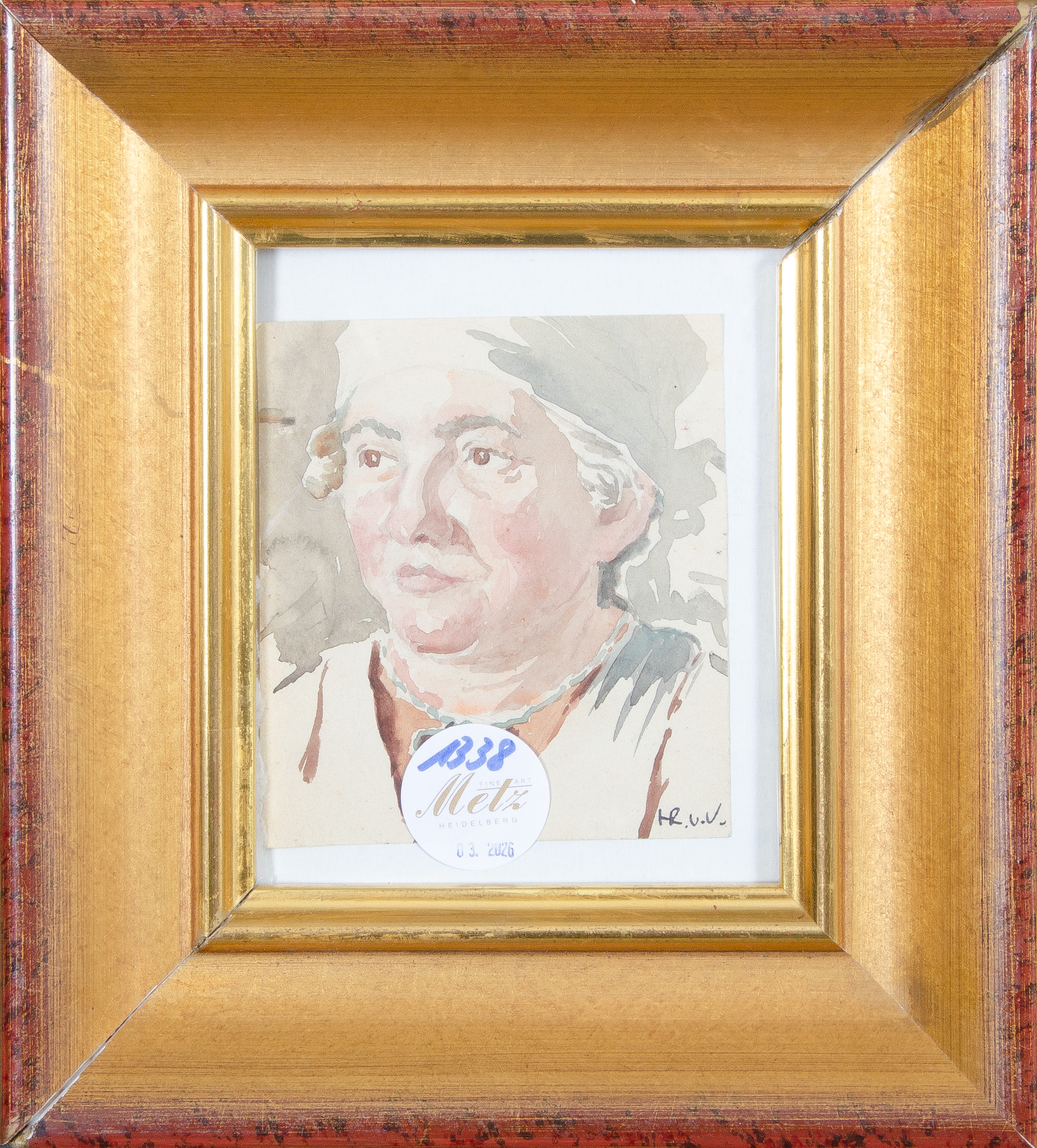 - Katalog-Nr: 1338Hans Richard von Volkmann (1860-1927). Herrenporträt. Aquarell/Papier, re./u./monogr. „HR.v.V.“, hi./Gl. gerahmt, 18,5 x 9 cm.o.L.