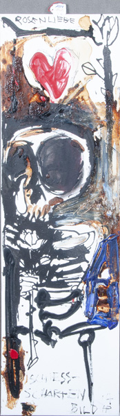 - Katalog-Nr: 1334Heiko Pippig (*1951). „Rosenliebe“ aus der Serie Schiess-Scharten. Öl/Lw., re./u./bez./monogr./dat. (20)14, 109 x 30 cm.o.L.