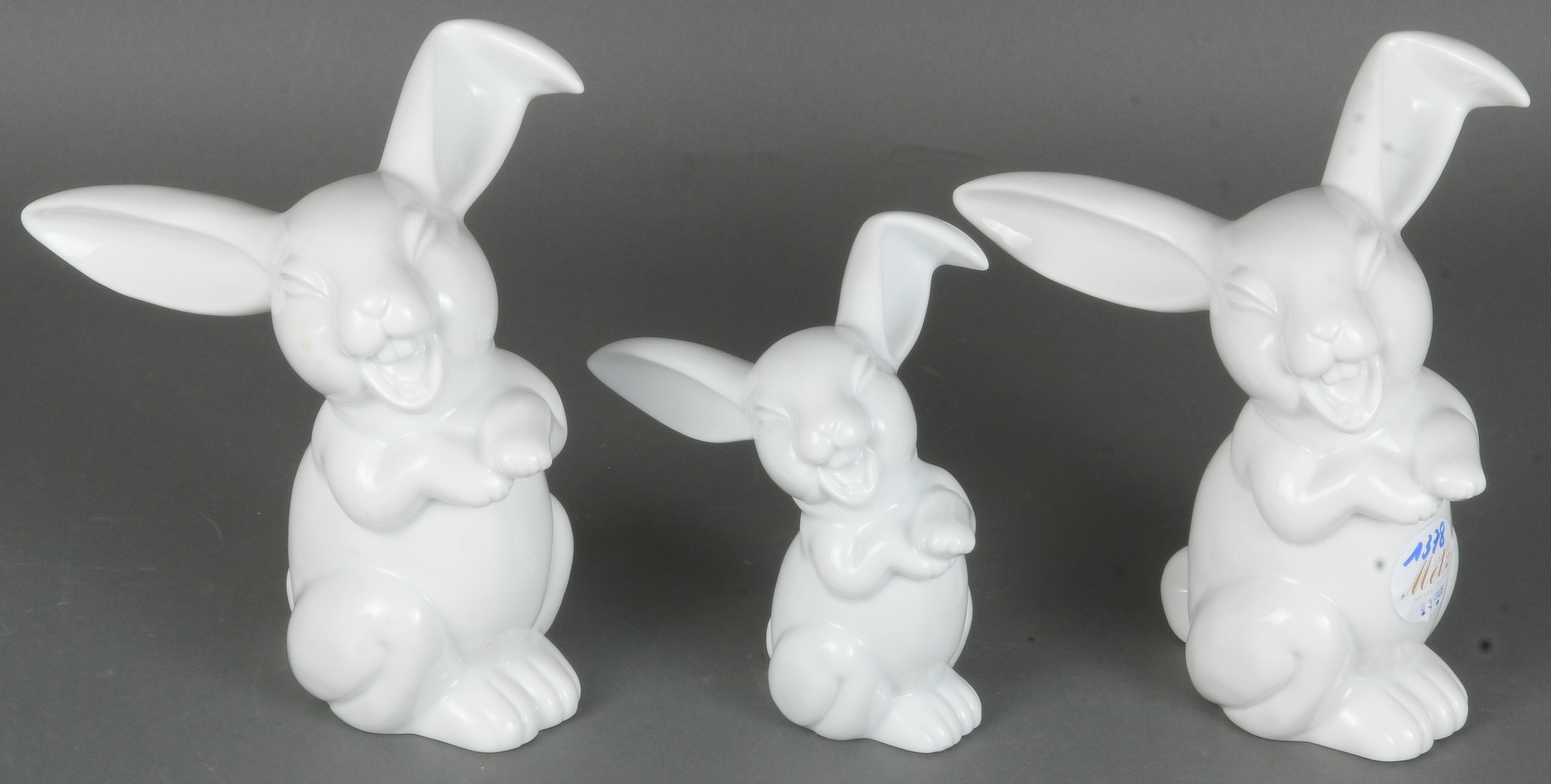 - Katalog-Nr: 1378Drei Hasen. Rosenthal 20. Jh. Porzellan, weiß glasiert, am Boden gemarkt, H=12,5 bis 18 cm.o.L.