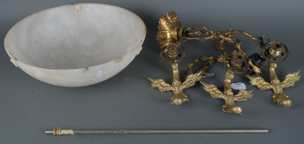 - Katalog-Nr: 1386Dreiflammige Deckenampel mit Marmorschale, D=33 cm. (Funktion und Zustand ungeprüft)o.L.