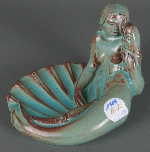 - Katalog-Nr: 1414Gudmundur Einarsson (1895-1963). „Meerjungfrau“. Keramik, bunt glasiert, am Boden Pressmarke und -zeichen „GE1939“, H=13 cm, B=18 cm, T=14 cm.o.L.
