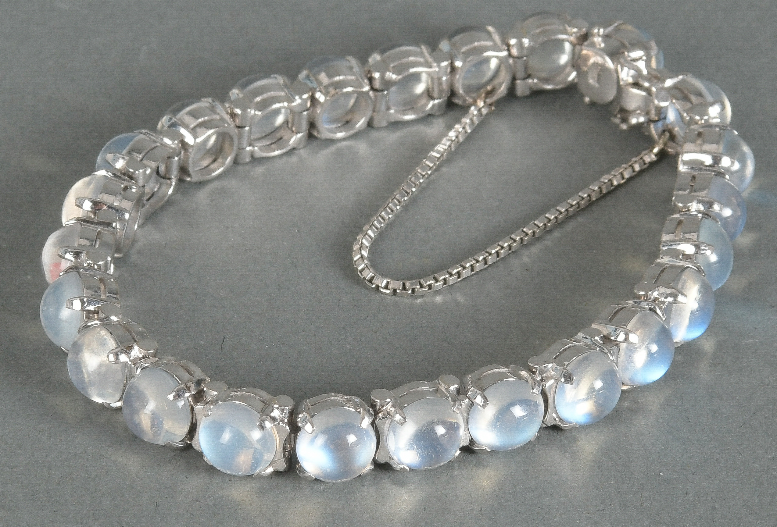 - Katalog-Nr: 1492Armband. 14 kt Gold, besetzt mit Mondsteinen, Gesamtgewicht ca. 30,6 g, L=19 cm.o.L.
