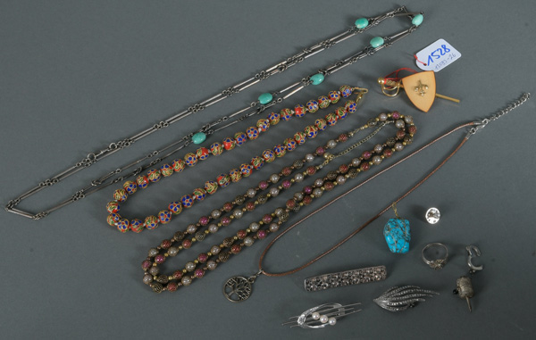 - Katalog-Nr: 1528Konvolut Modeschmuck, meist Anhänger, Broschen und Halsketten, L=44 bis 96 cm.o.L.