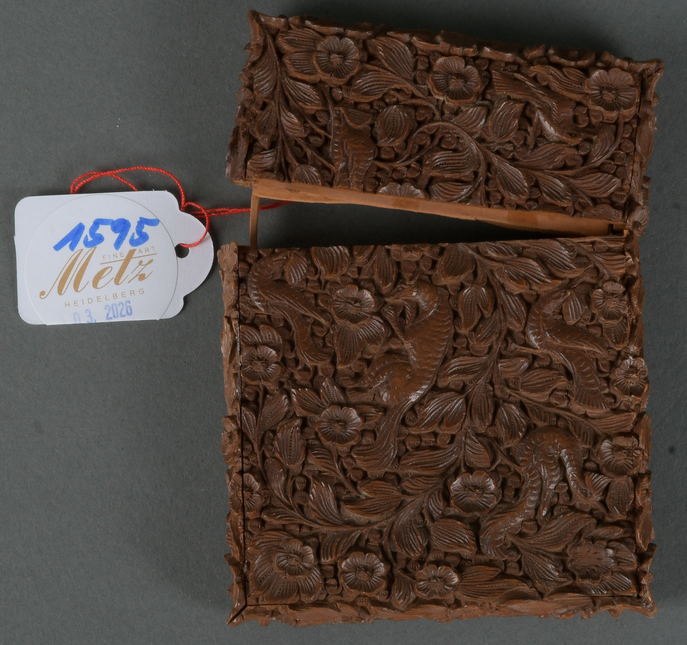 - Katalog-Nr: 1595Etui. Deutsch 19. Jh. Buchsbaum, meisterhaft geschnitzt, H=10,6 cm, B=8 cm, T=1,5 cm.o.L.