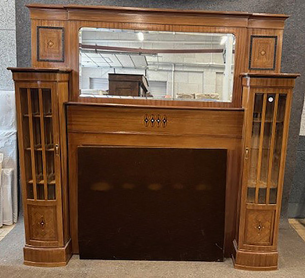 - Katalog-Nr: 1645Chaiselongue-Verkleidung. Rechts und links Vitrinen, in der Mitte ein Spiegel, passend zur Vornummer, H=206 cm, B=212 cm, T=33,5 cm.o.L.