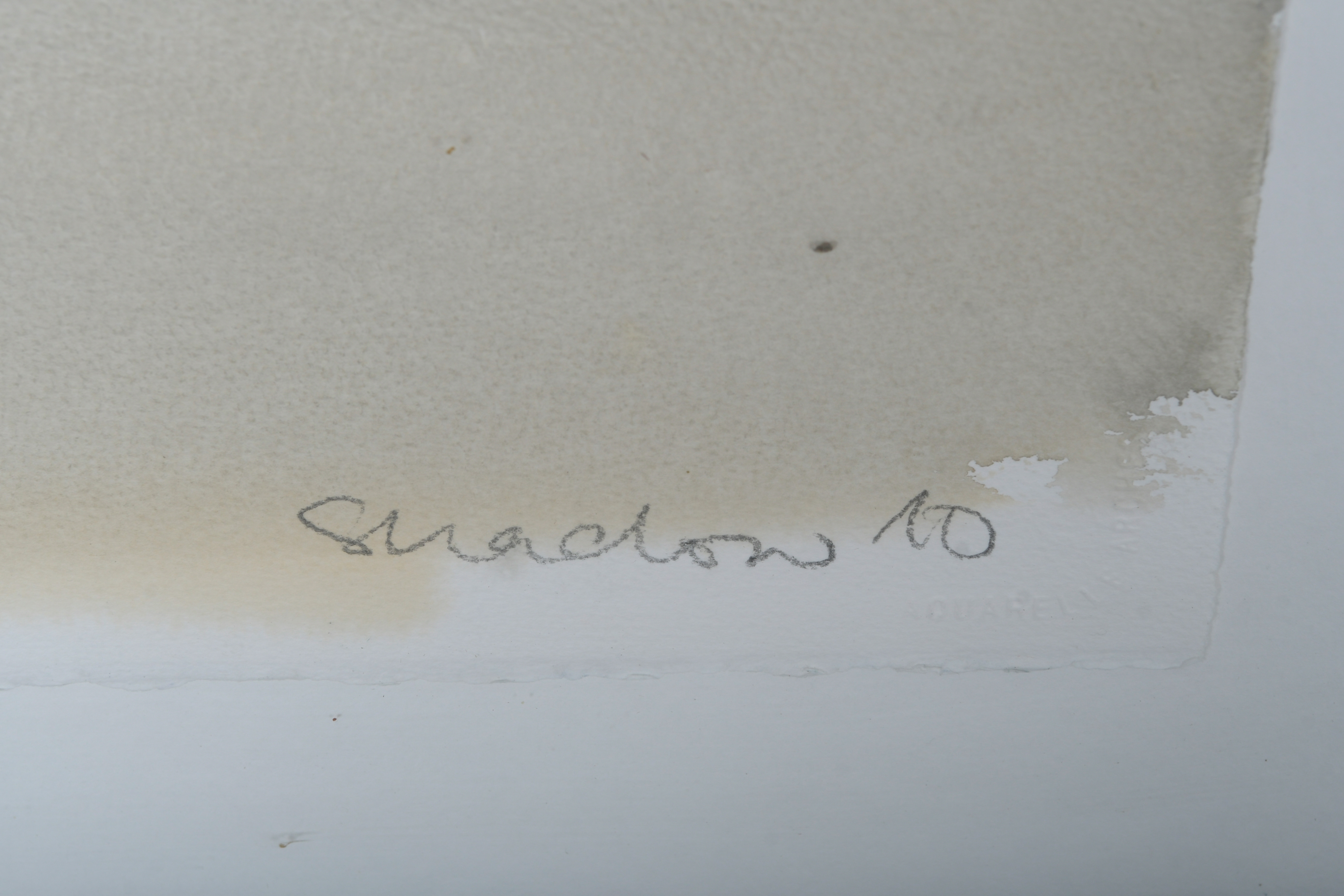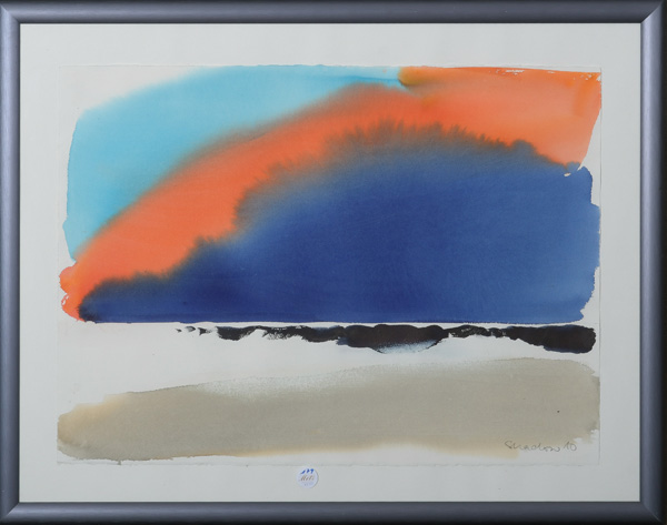- Katalog-Nr: 179Shadow (Maler des 20. Jhs.). Bunte Komposition. Aquarell/Papier, re./u./sign./dat. (20)10, hi./Gl. gerahmt, 57 x 77 cm.o.L.
