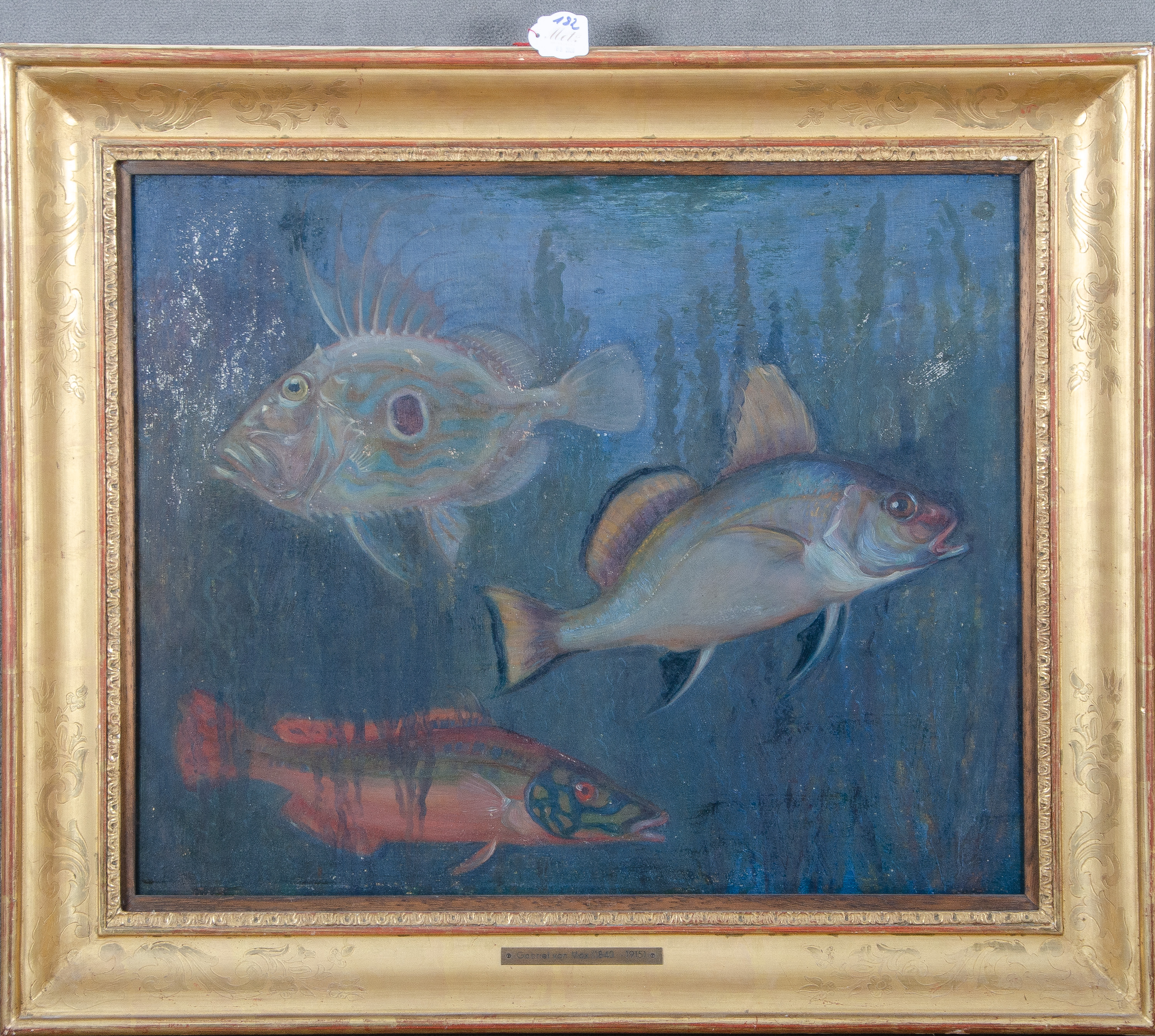 - Katalog-Nr: 182Maler des 19. Jhs. Drei Fische. Öl/Holz, gerahmt, 49 x 59 cm.o.L.