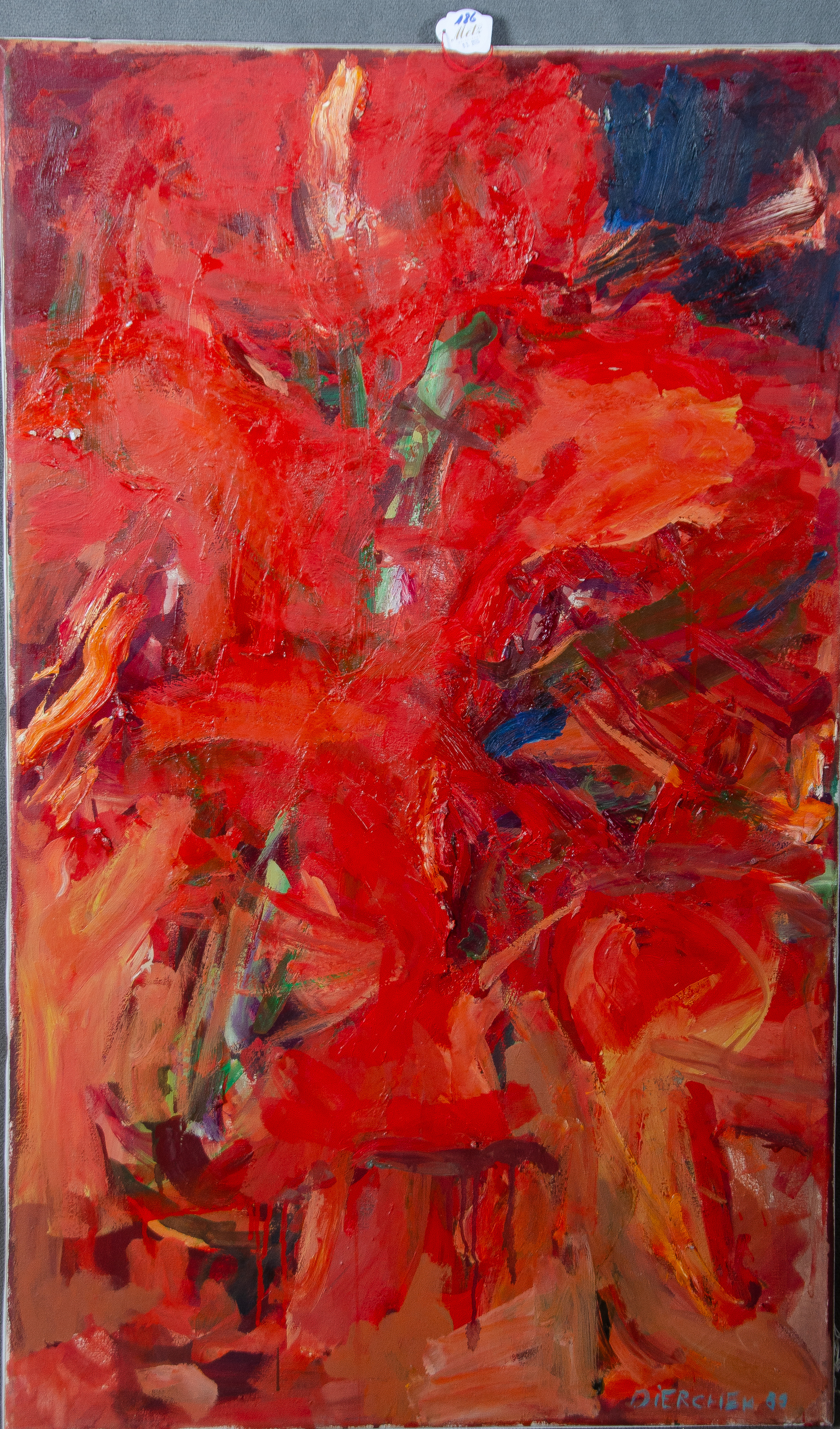 - Katalog-Nr: 186Jörg Dierchen (Maler des 20. Jhs.). Abstrakte Komposition. Öl/Lw., re./u./sign./dat. (19)89, 100 x 60 cm.o.L.