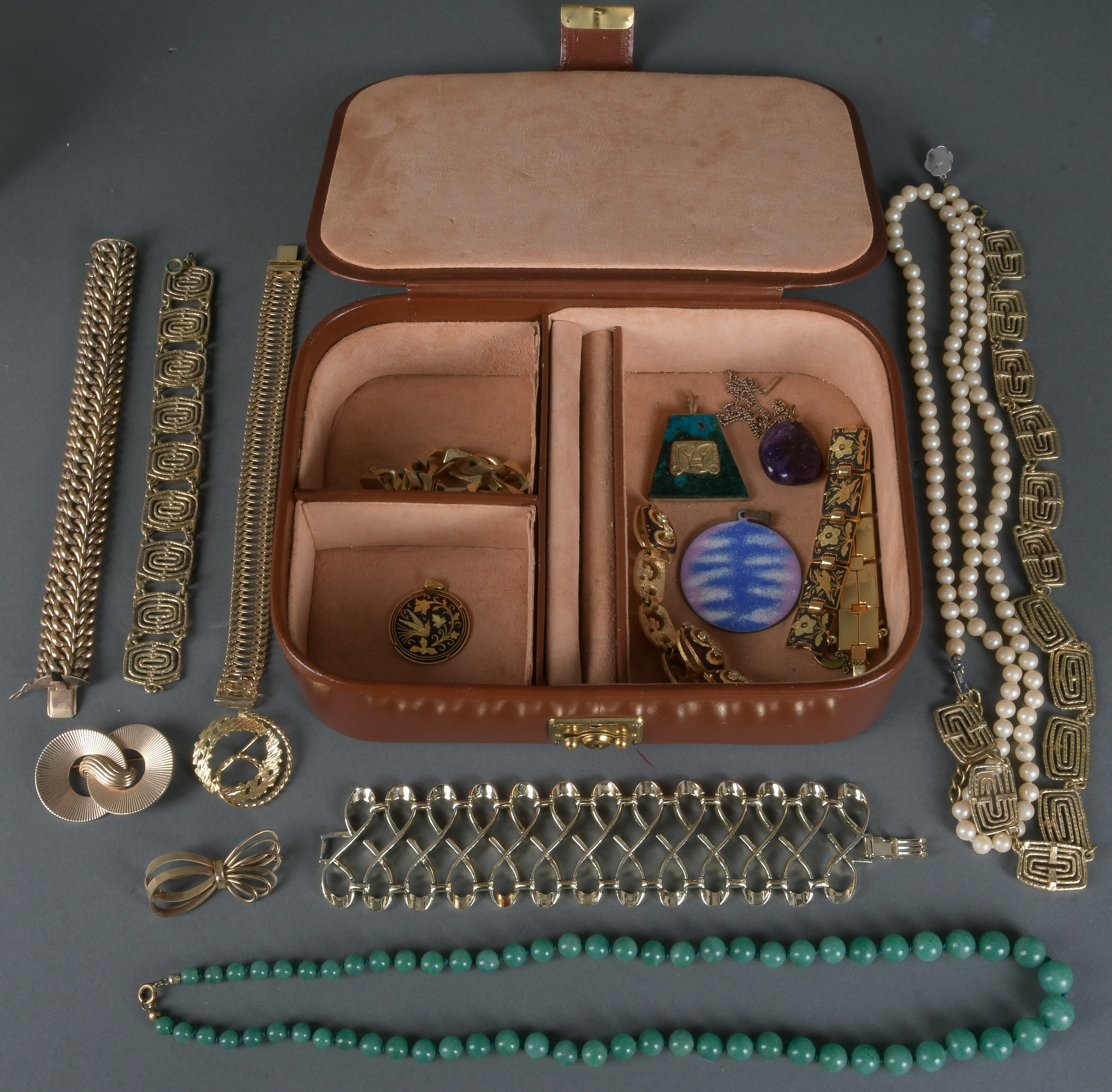 - Katalog-Nr: 197Konvolut Modeschmuck, u.a. Anhänger, Armbänder, Broschen und Halsketten. Versilbert, teilw. besetzt mit Karneol und Perlen, L=19 bis 56 cm.o.L.