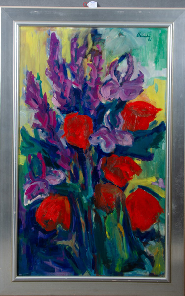 - Katalog-Nr: 183Wolfgang Maria Wentzig (1925-2002) attrib. Blumenstillleben mit Mohn. Öl/Lw., re./o. unleserlich sign./dat. (19)66, gerahmt, 101 x 60 cm. (rest.)o.L.