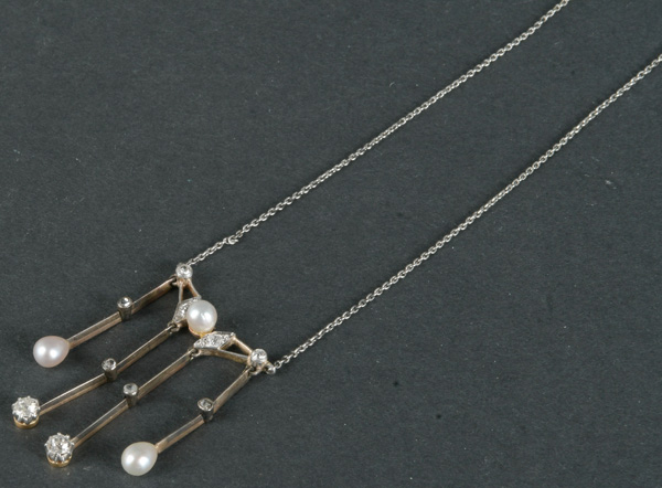 - Katalog-Nr: 199Collier. 14 kt Gold, besetzt mit Altschliff-Brillanten, ca. 0,50 ct, und Perlen, Gesamtgewicht ca. 6,9 g, L=40 cm. Die Begutachtungen der verarbeiteten Edelsteine und Diamanten wurden im gefassten Zustand vorgenommen, d.h. unter Vorbehalt einer sachgerechten Graduierung, die nur an ungefassten Steinen erfolgen kann. Dies hat zur Folge, dass die Gewichte (sog. "berechnete Gewichte", d.h. ca.+/- 10 % Abweichung) und Qualitäten (Farbe, Reinheit und Schliff) der Steine nur annähernd angegeben werden können.o.L.