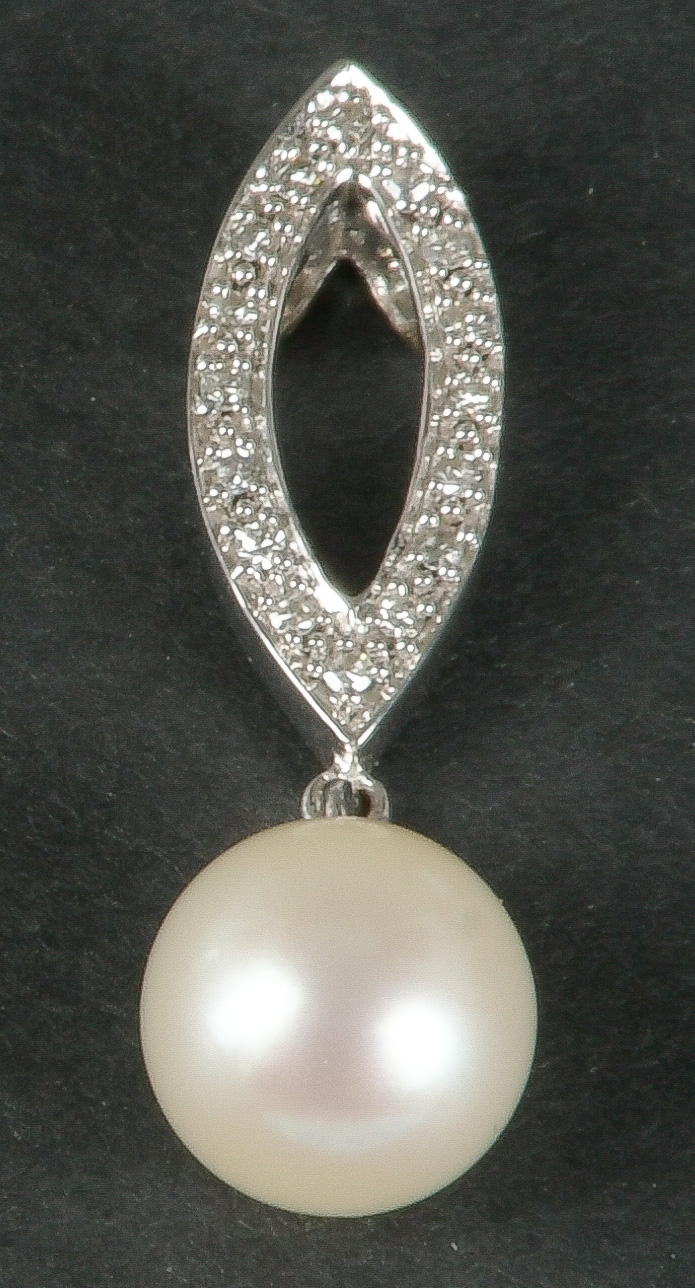 - Katalog-Nr: 218Anhänger. 14 kt Gold, besetzt mit Diamanten, ca. 0,12 ct, und Perle. Die Begutachtungen der verarbeiteten Edelsteine und Diamanten wurden im gefassten Zustand vorgenommen, d.h. unter Vorbehalt einer sachgerechten Graduierung, die nur an ungefassten Steinen erfolgen kann. Dies hat zur Folge, dass die Gewichte (sog. "berechnete Gewichte", d.h. ca.+/- 10 % Abweichung) und Qualitäten (Farbe, Reinheit und Schliff) der Steine nur annähernd angegeben werden können.o.L.