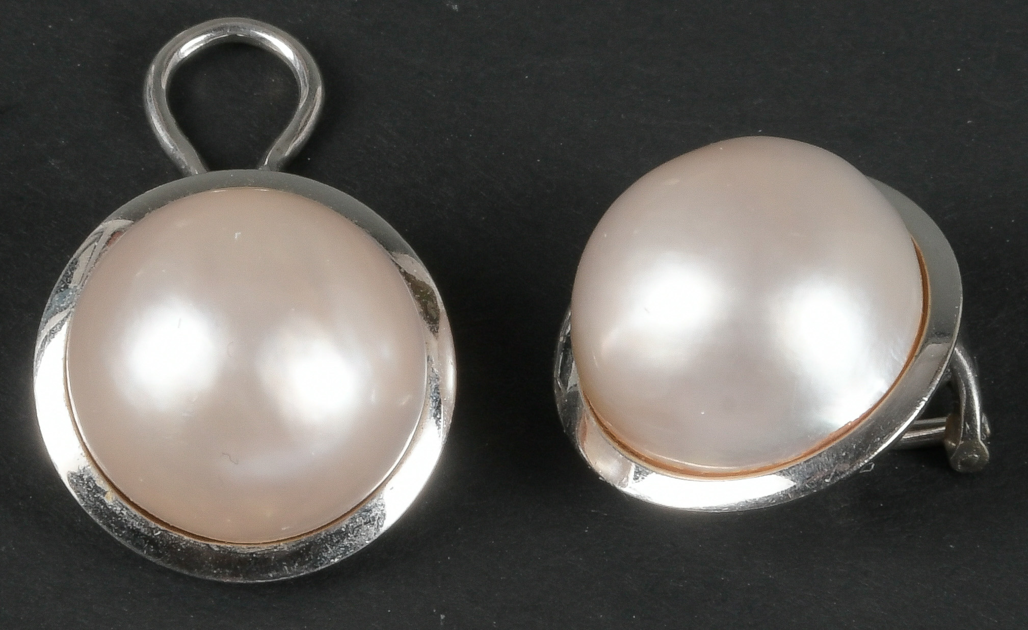 - Katalog-Nr: 219Paar Ohrclips. 14 kt Gold, besetzt mit Marbé-Perle, Gesamtgewicht ca. 11,6 g.o.L.