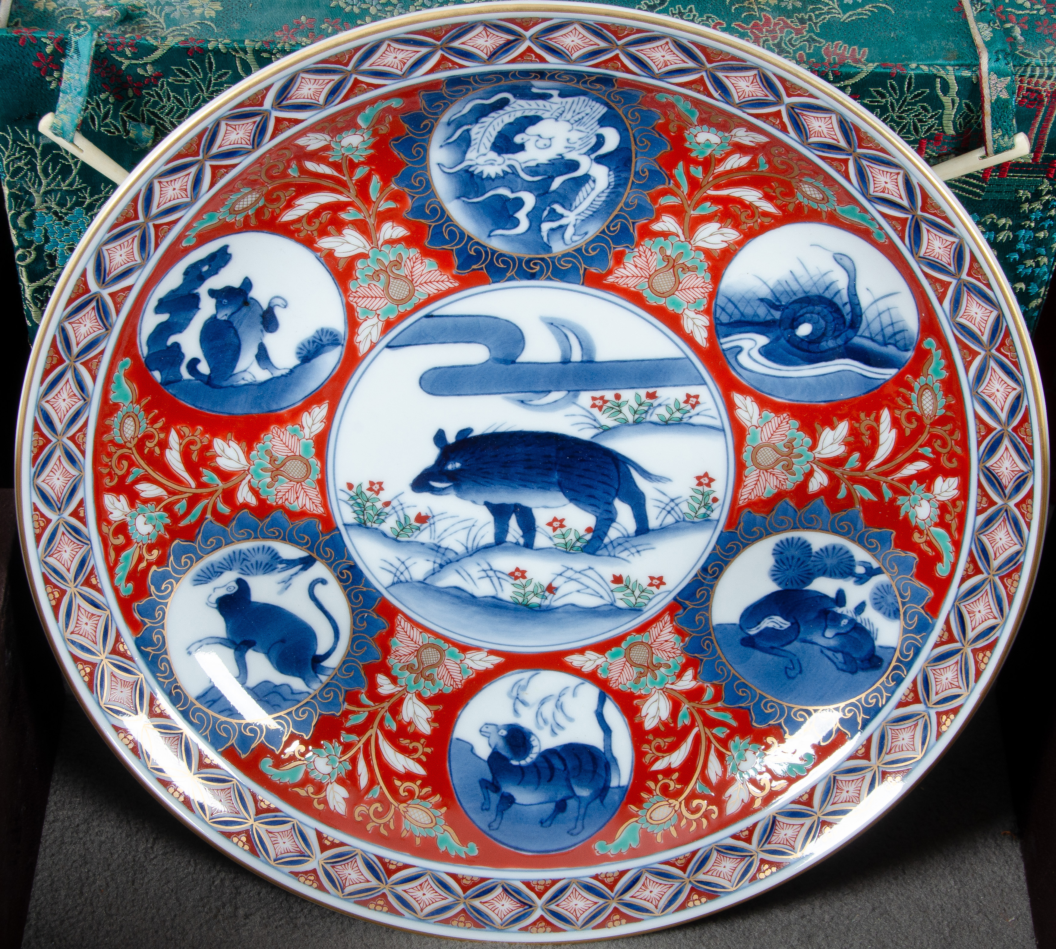 - Katalog-Nr: 506Zwölftlgs. Konvolut Asiatika: Sieben Porzellanschalen, bunt bemalt (H=4,5 bis 11 cm, D=11,5 bis 28 cm) im Etui, zwei Miniatur-Vasen (H=5 / 6 cm), eine Rotlack-Deckeldose (H=13 cm, D=11 cm), ein Teller (D=30 cm) und eine Vase (H=28 cm). (besch.)o.L.
