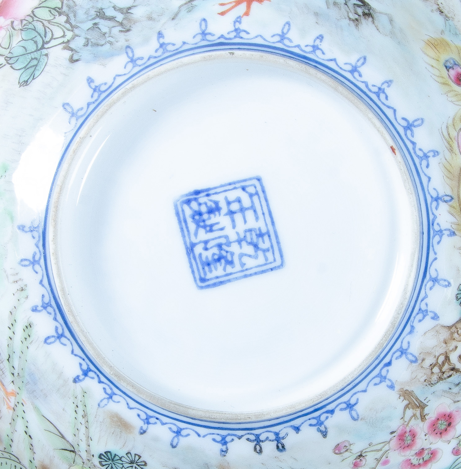 - Katalog-Nr: 516Paar Gedecke. Fürstenberg 20. Jh. Porzellan, bunt bemalt mit Streublumen, Goldrand; am Boden gemarkt, D=19,2 cm.o.L.