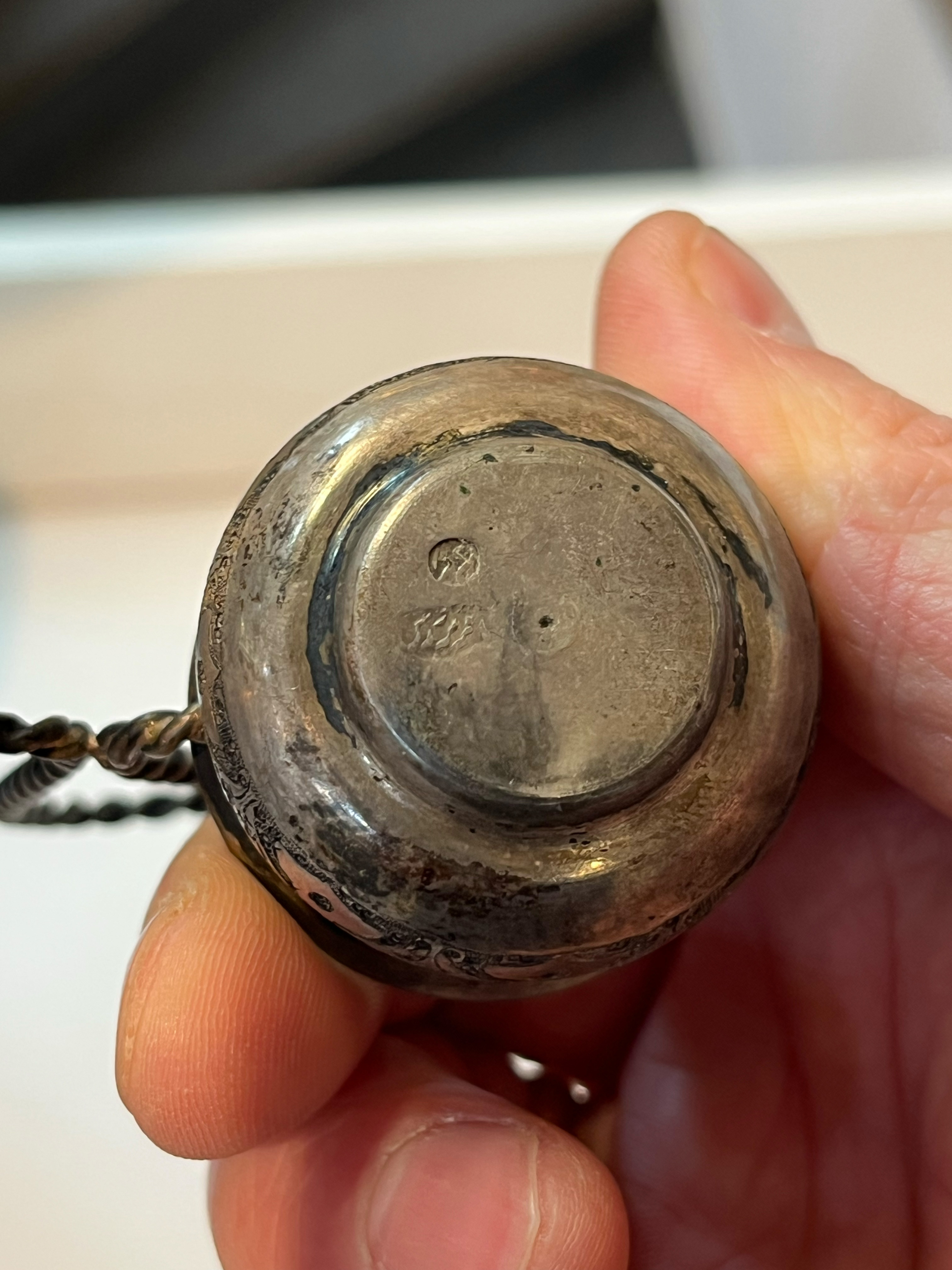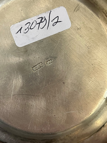 - Katalog-Nr: 102533-tlgs. Teeservice. Orient. Persisches Silber, ca. 2.290 g. Bestehend aus: Zehn Teeglashalterungen mit Glaseinsätzen, 19 Becher (H=je 4,5 cm), zwei Aschenbecher (D=je 10 cm) und ein Tablett (D=31 cm); dazu eine Gewürzdoppelschale (H=8 cm, B=8,7 cm, T=3,7 cm).o.L.