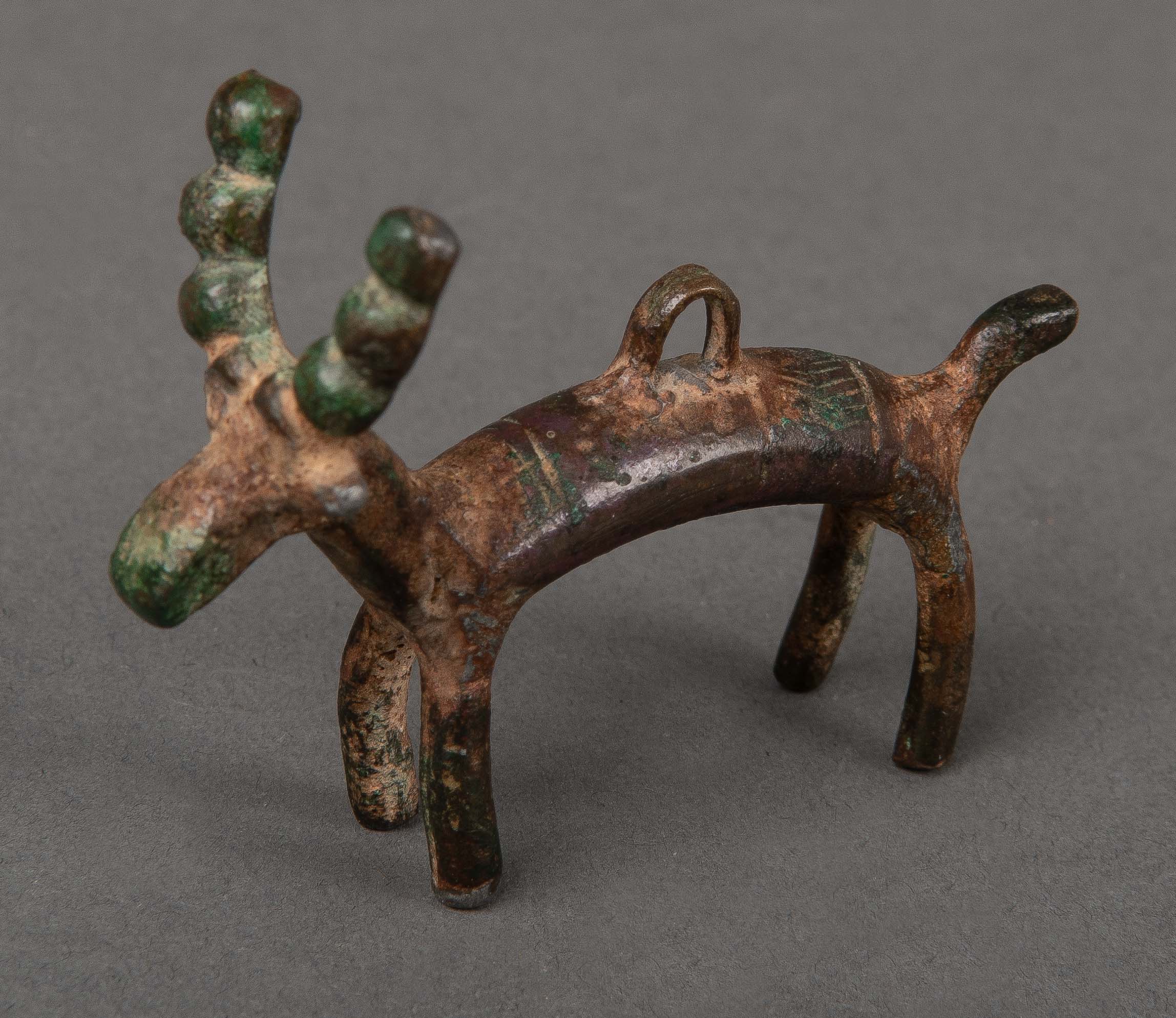 - Katalog-Nr: 11Hirsch. Lt. Rechnung Luristan 1000 v. Chr. Bronze mit Öse. Provenienz: Athena, München 1992, H=4,2 cm.o.L.Bitte melden sie sich an, um ein elektronisches Vorgebot abzugeben