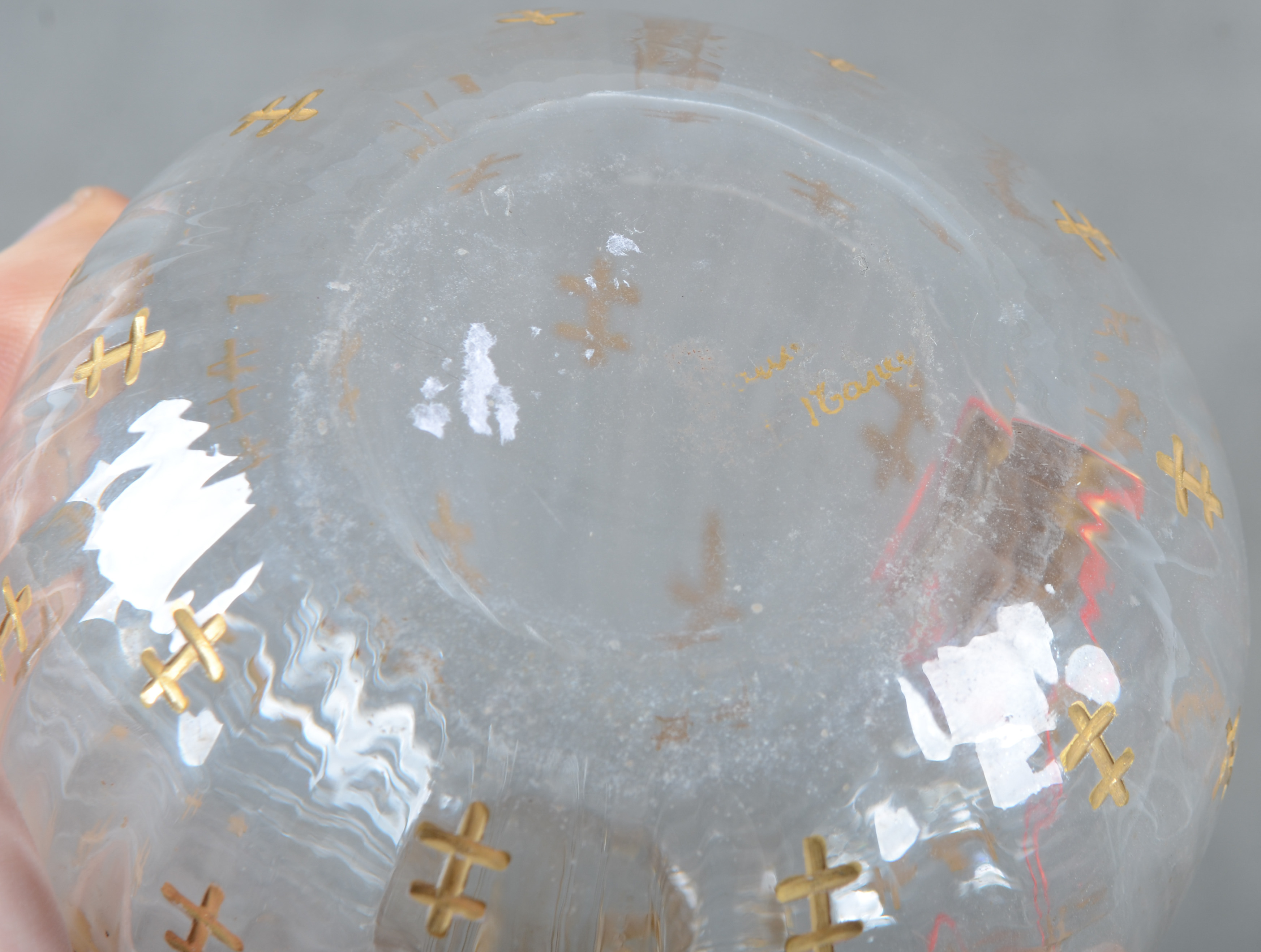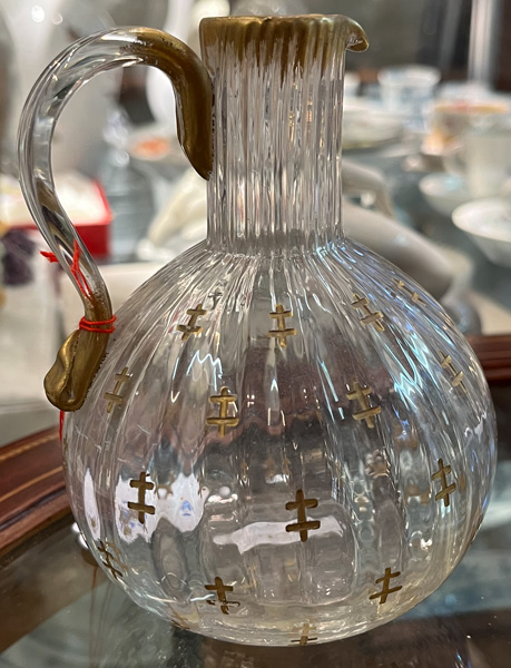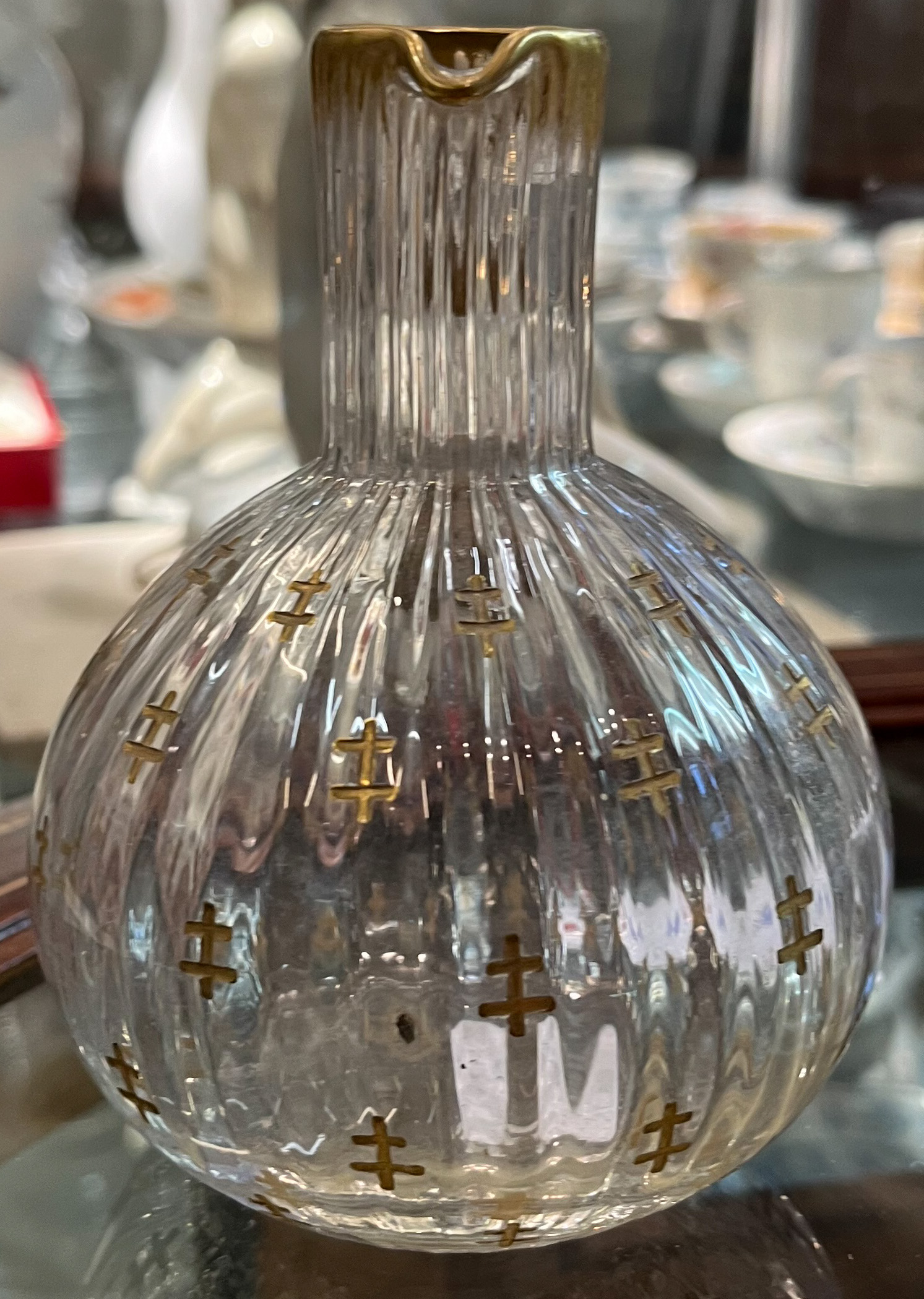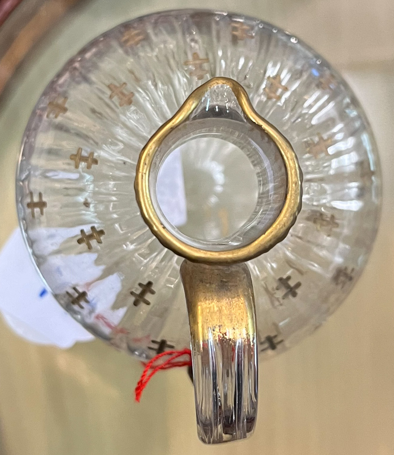 - Katalog-Nr: 41Jugendstil-Henkelkrug. Nancy, Daum Frères & Cie, Verreries um 1900. Farbloses Glas mit Kaltgoldbemalung; am Boden sign., H=12,2 cm.Orientierungswert: € 1.000,-NO RESERVEo.L.Bitte melden sie sich an, um ein elektronisches Vorgebot abzugeben