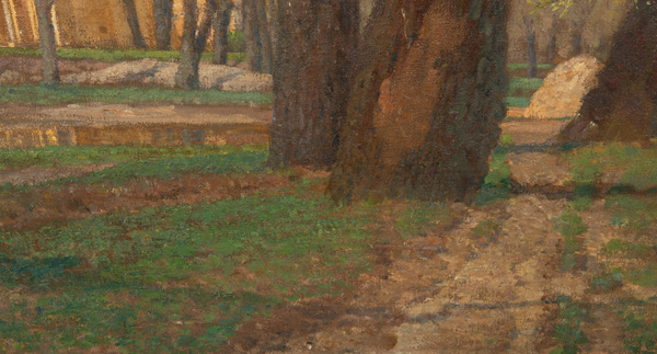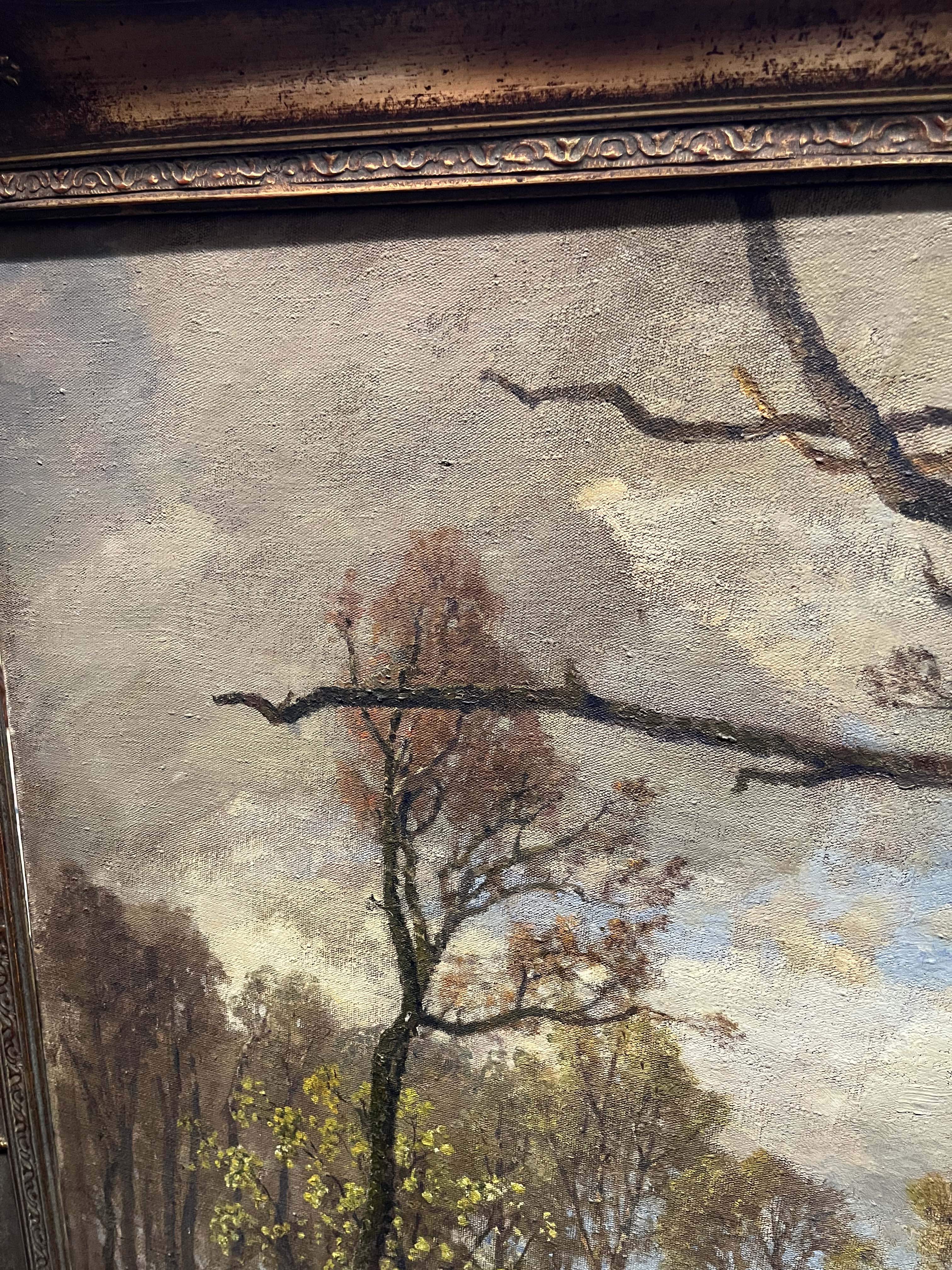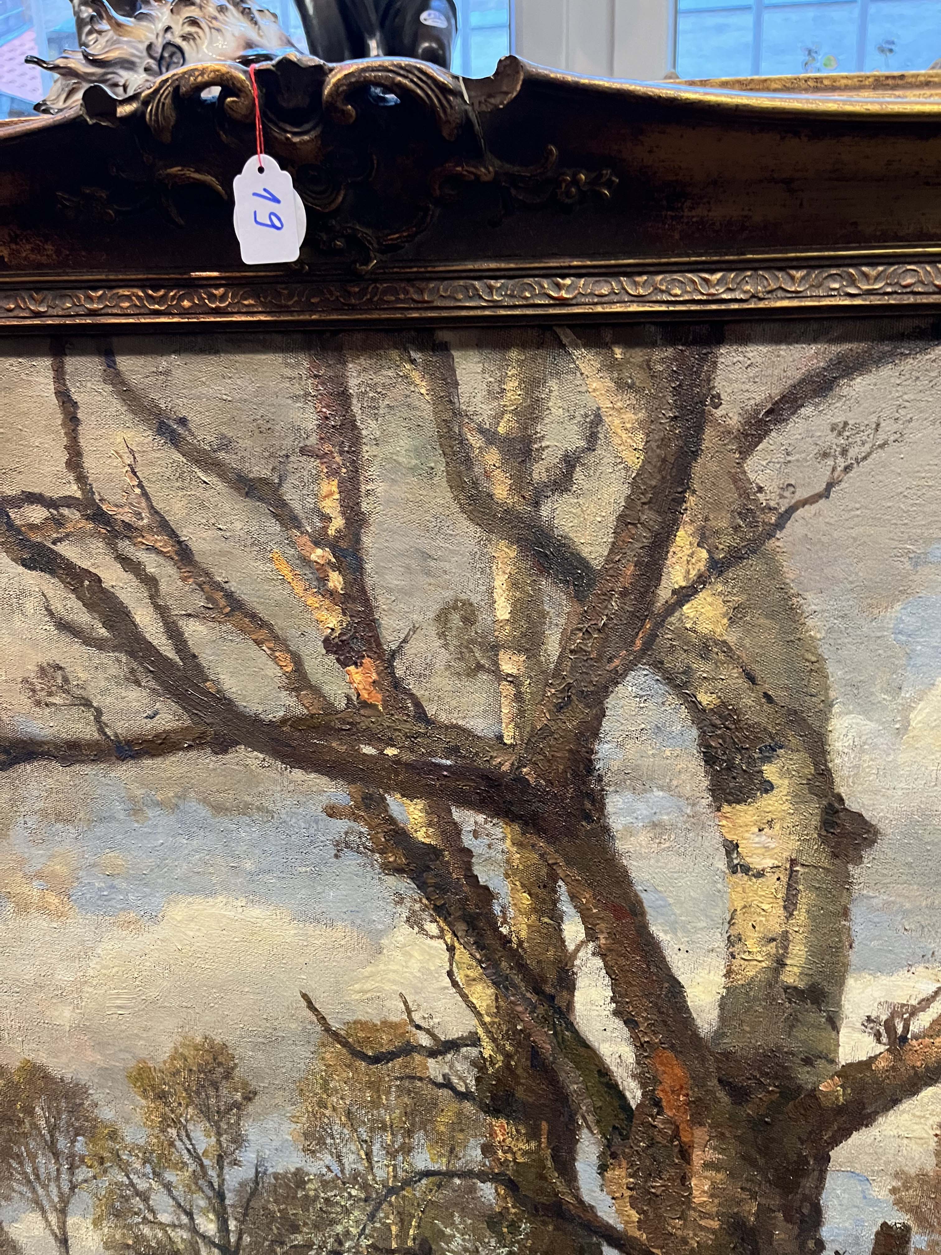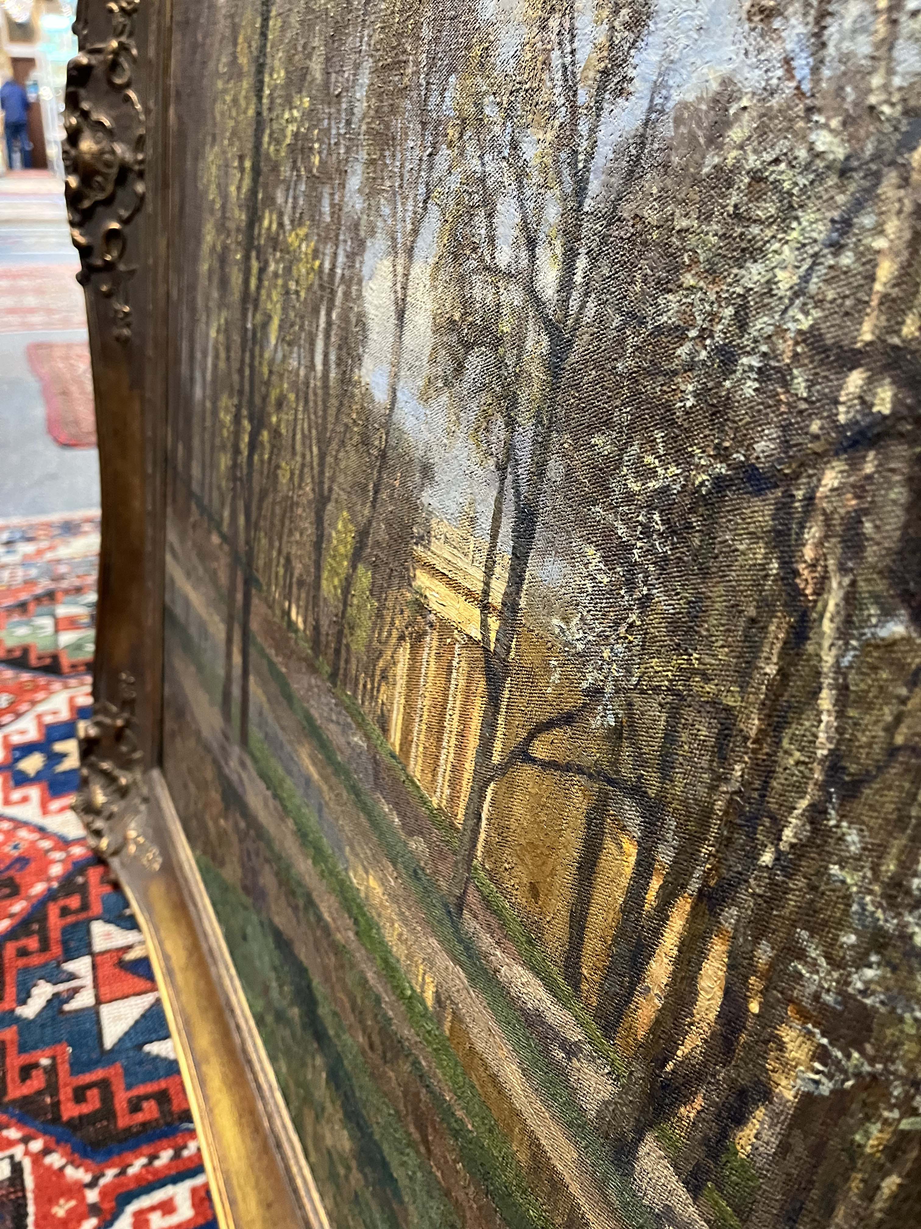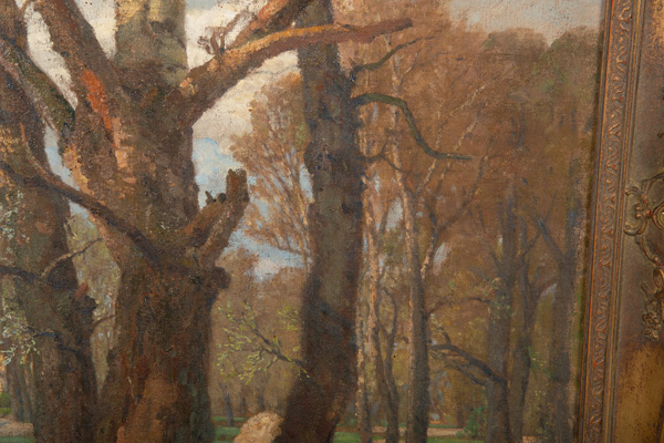 Tina Blau-Lang (1845-1916). Ansicht vom Wiener Prater mit Blick auf den von Carl von Hasenauer entworfenen Pavillon. Öl/Lw., re./u./sign./dat. 1912, gerahmt, 95 x 115 cm. **