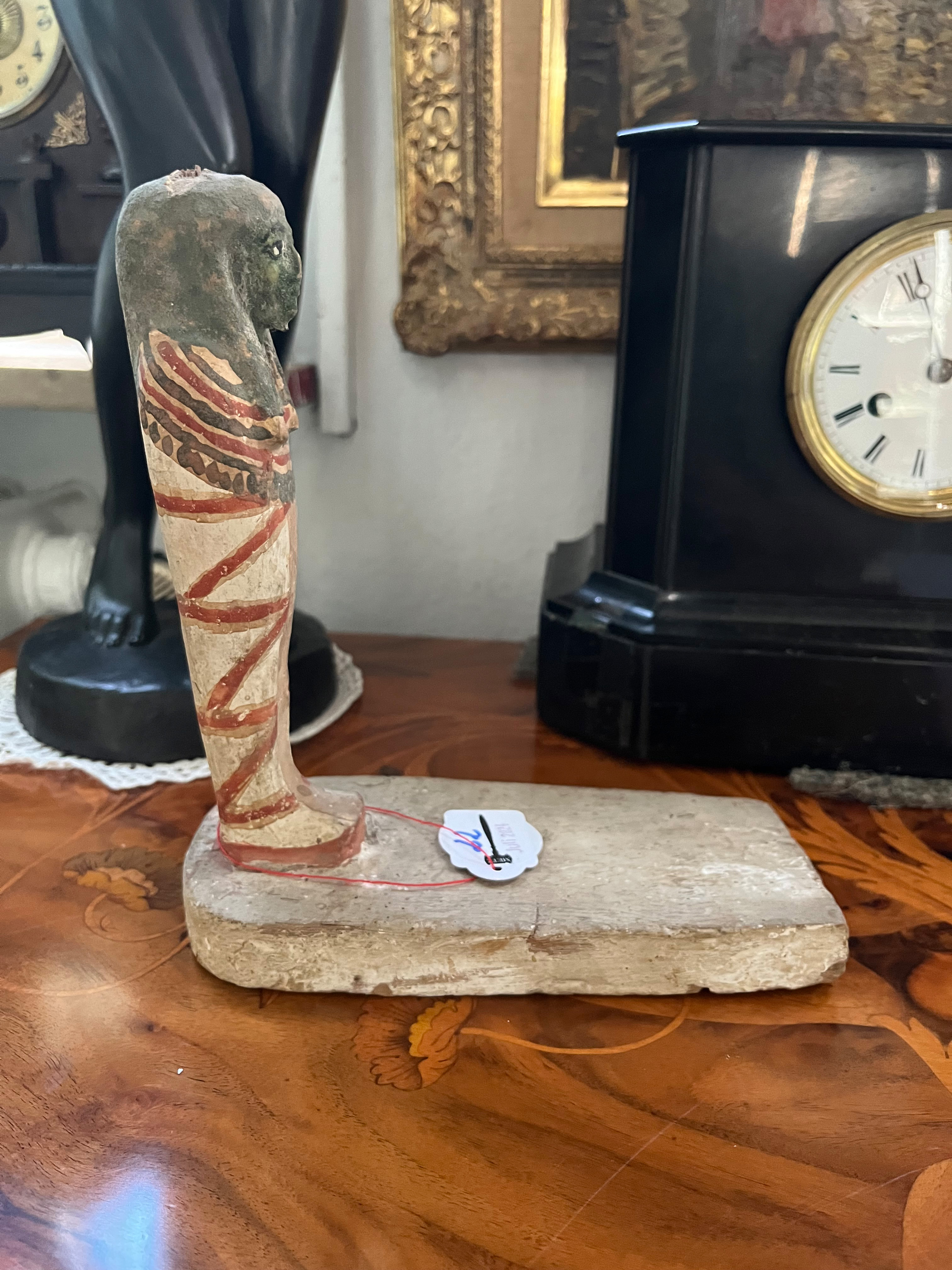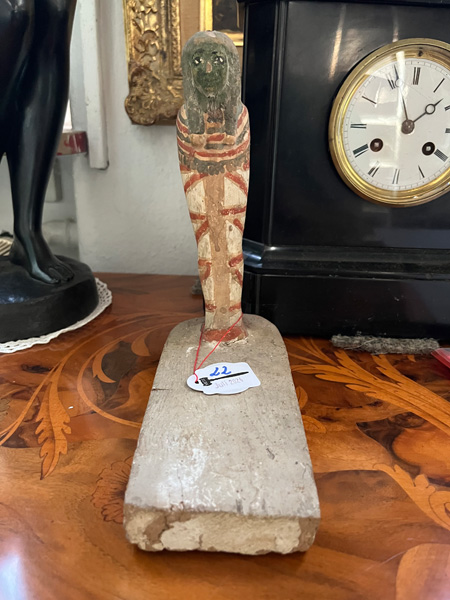 - Katalog-Nr: 22Statuette des Ptah-Sokar. Wohl Ägypten Ptolemäische Epoche 2. Jh. v. Chr. Holz, geschnitzt und bunt bemalt, H=20,5 cm. Provenienz: Seit den 1970er Jahren in Heidelberger Privatbesitz. (best. / Altersspuren)o.L.Bitte melden sie sich an, um ein elektronisches Vorgebot abzugeben