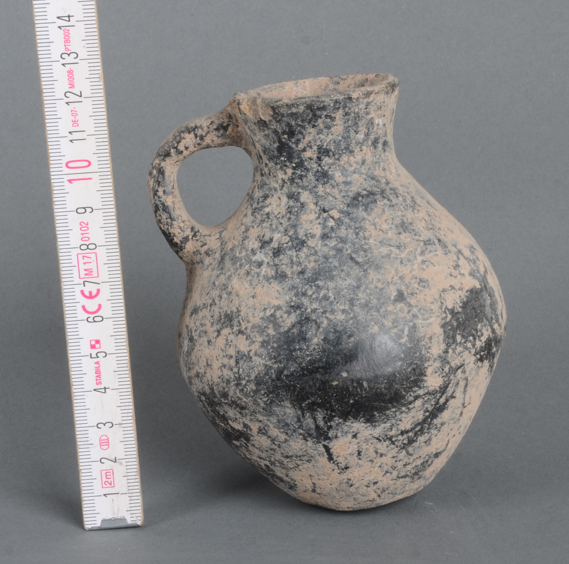 - Katalog-Nr: 30Wohl Etruskische Kanne. Italien 7./6. Jh. v. Chr. Bucchero-Keramik, H=7 cm. Provenienz: Seit den 1970er Jahren in Heidelberger Privatbesitz. (Altersspuren)o.L.Bitte melden sie sich an, um ein elektronisches Vorgebot abzugeben