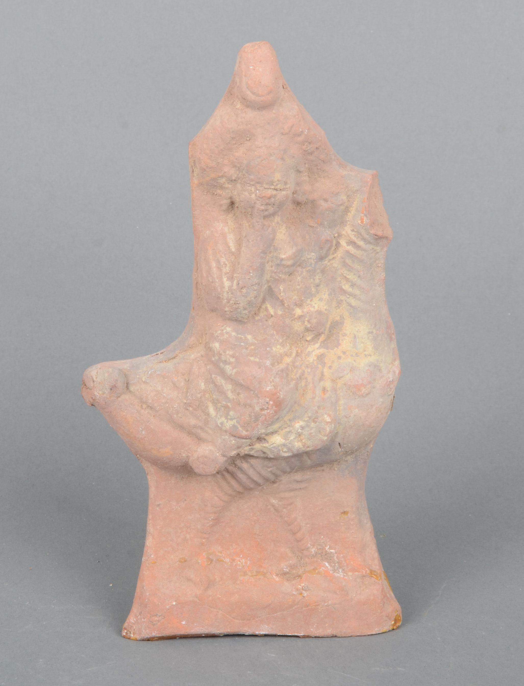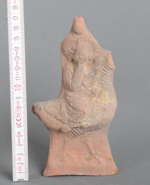 - Katalog-Nr: 32Harpokrates auf einer Gans reitend. Wohl Alexandria Römisches Reich 1./2. Jh. n. Chr. Fayum-Terrakotta, H=17 cm (ohne Sockel). Provenienz: Seit den 1970er Jahren in Heidelberger Privatbesitz. (Altersspuren)o.L.Bitte melden sie sich an, um ein elektronisches Vorgebot abzugeben