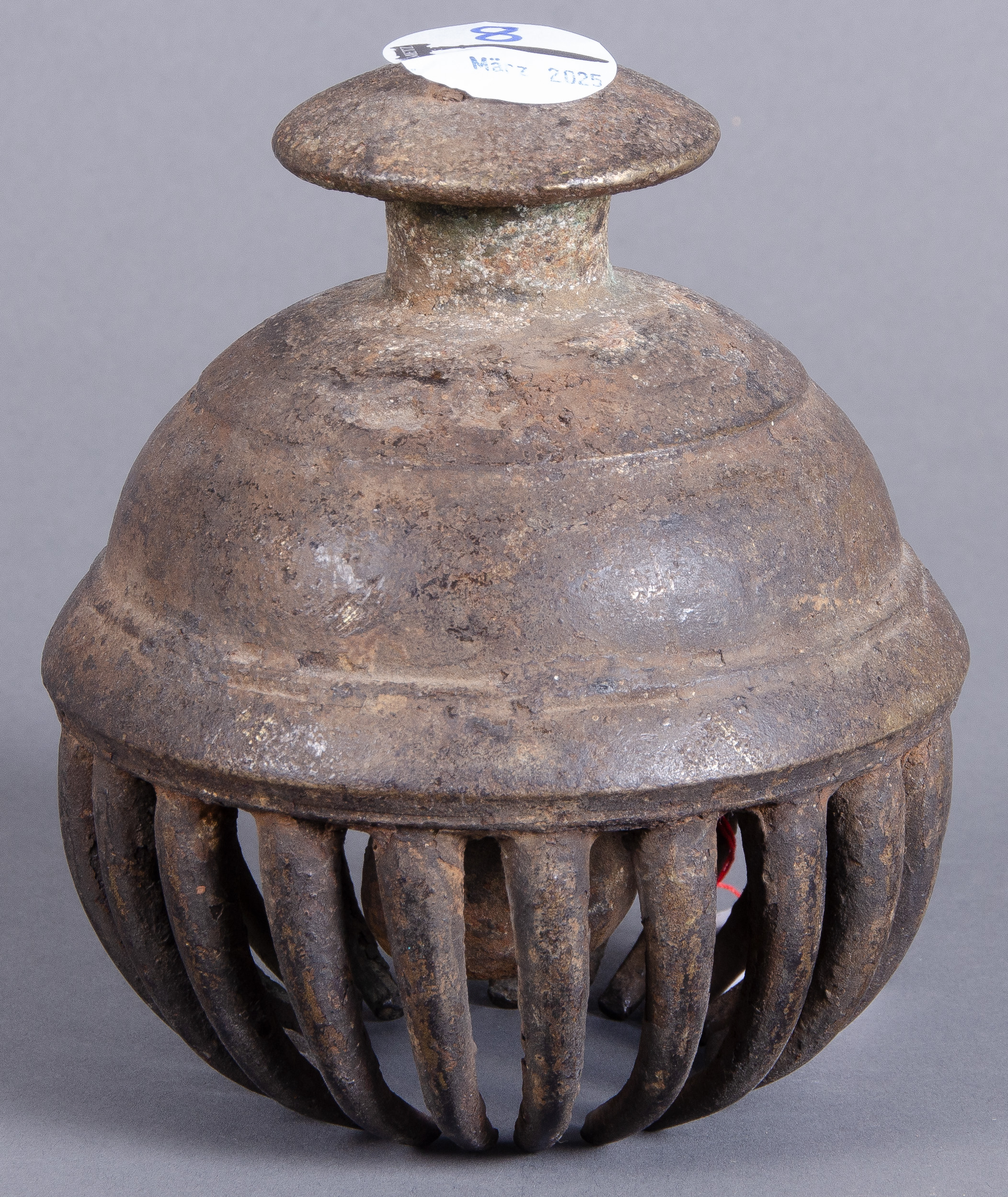 - Katalog-Nr: 8Elefantenglocke. Asien. Eisen, durchbrochen, mit innen liegendem Klöppel, H= 14,5 cm, D=12 cmo.L.Bitte melden sie sich an, um ein elektronisches Vorgebot abzugeben