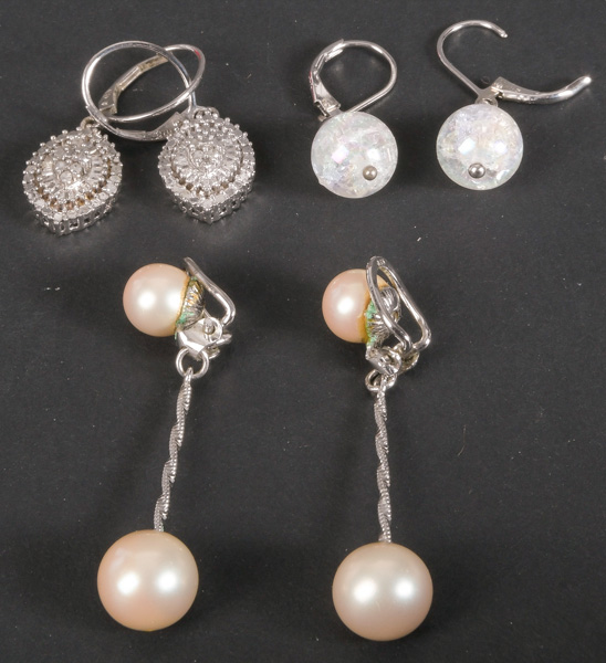 - Katalog-Nr: 31Drei Paar Ohrhänger. Silber, ca. 14,5 g, ein Paar besetzt mit Diamanten.o.L.Bitte melden sie sich an, um ein elektronisches Vorgebot abzugeben