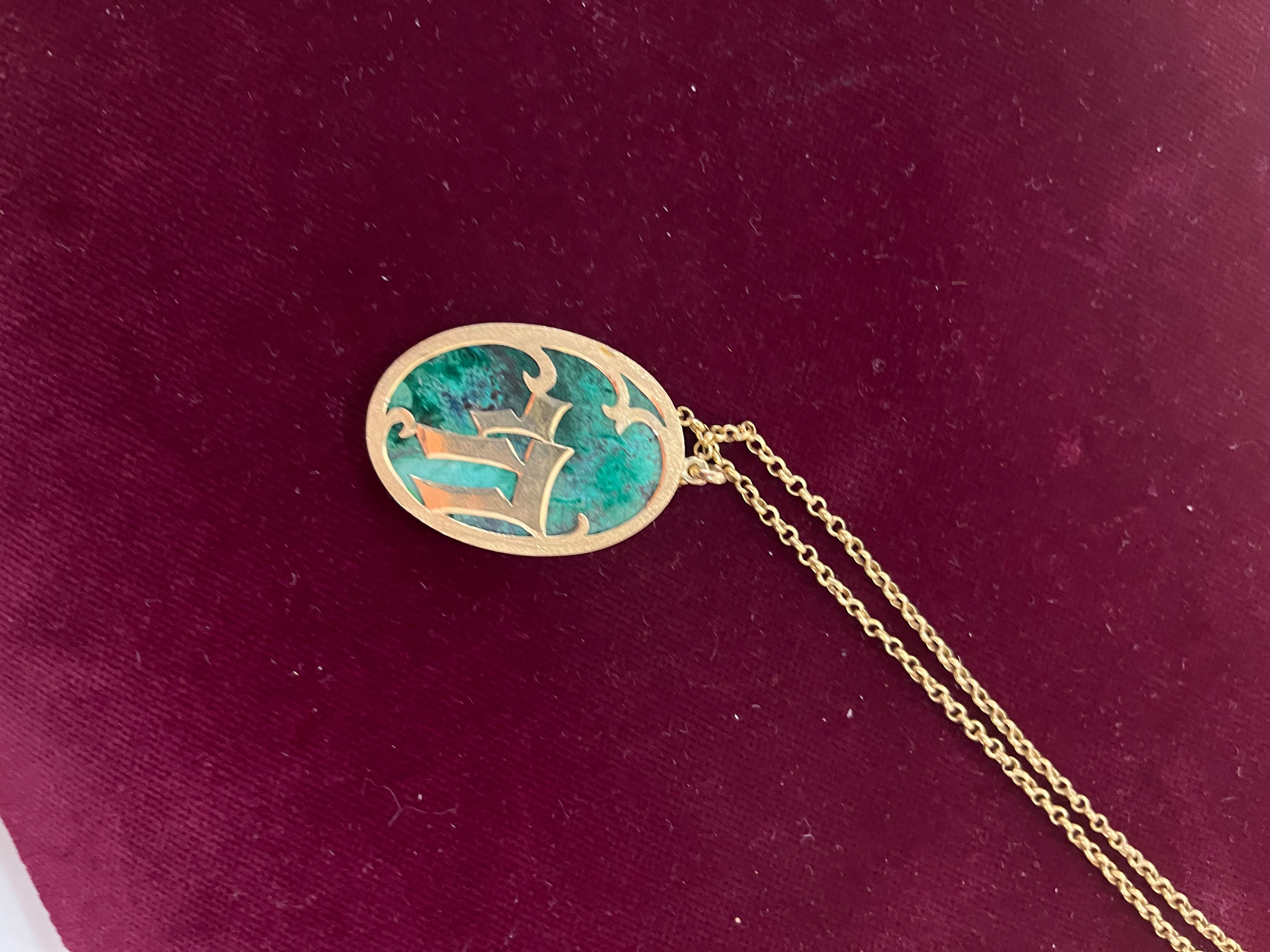 - Katalog-Nr: 203Zwei Halsketten mit Anhänger. 14 kt Gold, ca. 7 g / 18 kt Gold, ca. 11,8 g, besetzt mit Lapislazui bzw. Malachit, L=50 / 70 cm.o.L.Bitte melden sie sich an, um ein elektronisches Vorgebot abzugeben