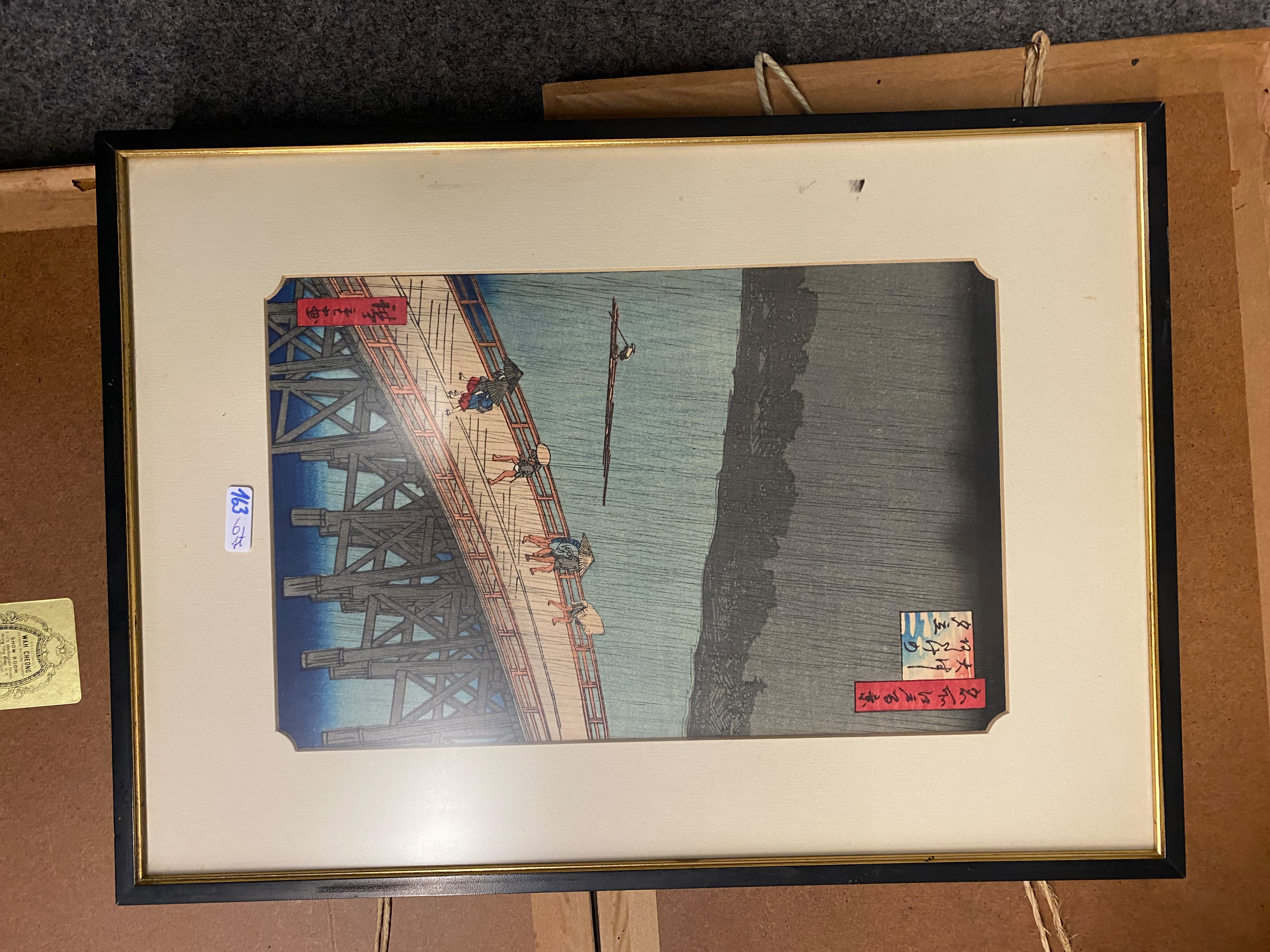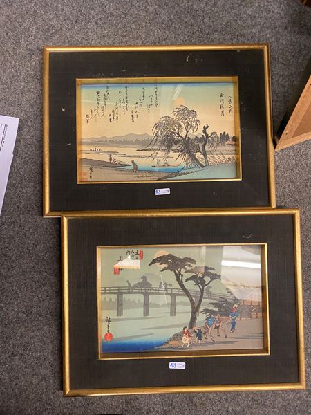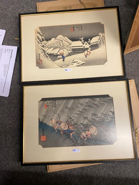 - Katalog-Nr: 163Graphiker des 20. Jhs. Sechs Kompositionen mit Personen in Landschaften mit Brücke und See. Farbholzschnitte, teilw. sign., mit Passepartout hi./Gl. gerahmt, 30 x 20 bis 16 x 28 cm.o.L.Bitte melden sie sich an, um ein elektronisches Vorgebot abzugeben