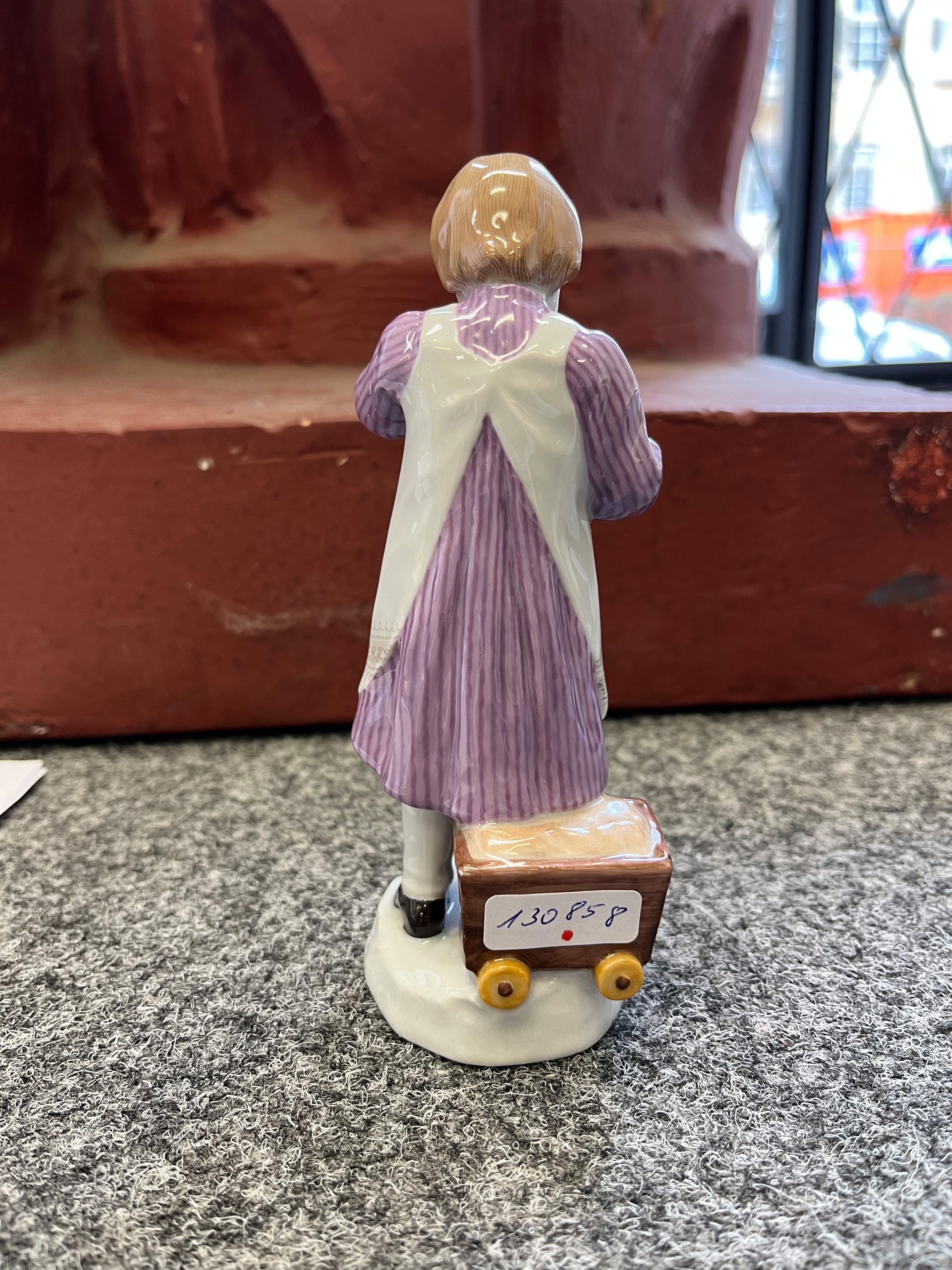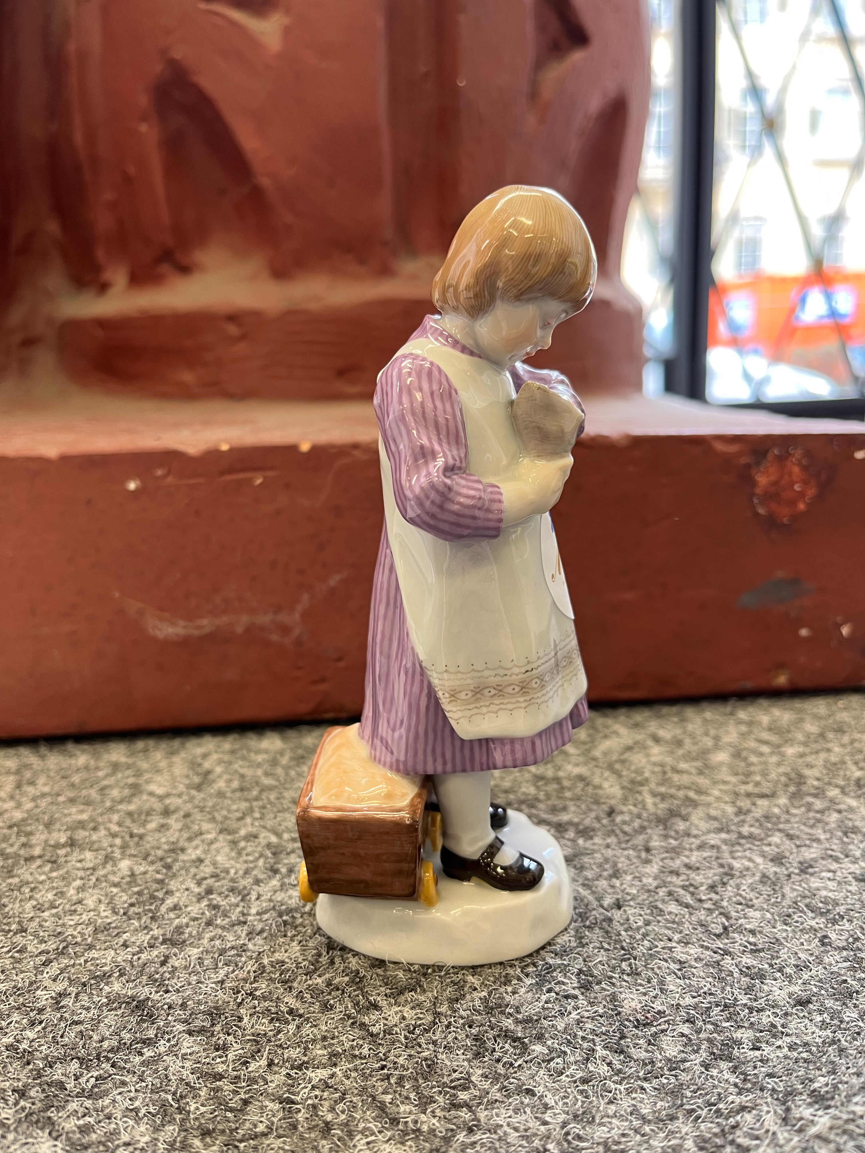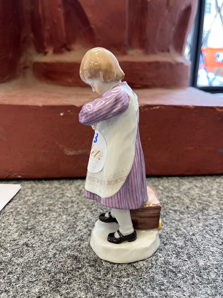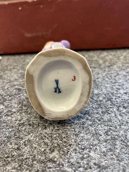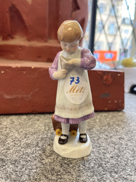 - Katalog-Nr: 73Mädchen mit Zuckertüte. Meissen 1908. Porzellan, bunt bemalt, am Boden unterglasurblaue Schwertermarke, Formnummer „Y.180“, Staffiererziffer „3.“, Entwurf von Paul Helmig, H=14,3 cm.o.L.Bitte melden sie sich an, um ein elektronisches Vorgebot abzugeben