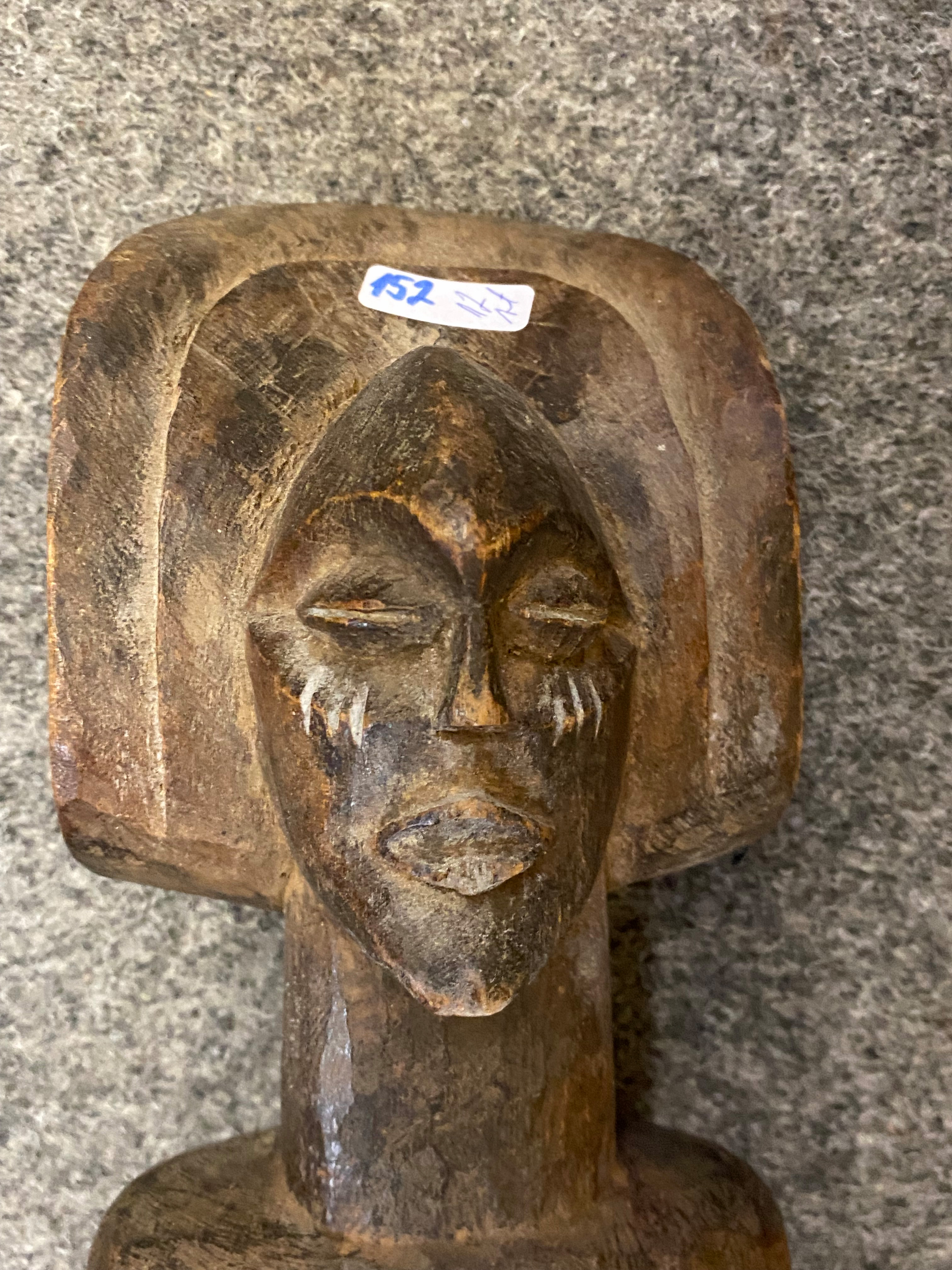 - Katalog-Nr: 152Konvolut Afrikana: Gottheits- und Kultfiguren sowie Masken. Massivholz, geschnitzt, H=46 bis 116 cm.o.L.Bitte melden sie sich an, um ein elektronisches Vorgebot abzugeben